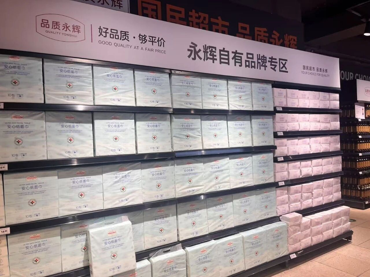 领展店永辉自有品牌专区及胖东来自有品牌 《消费者报道》记者 摄