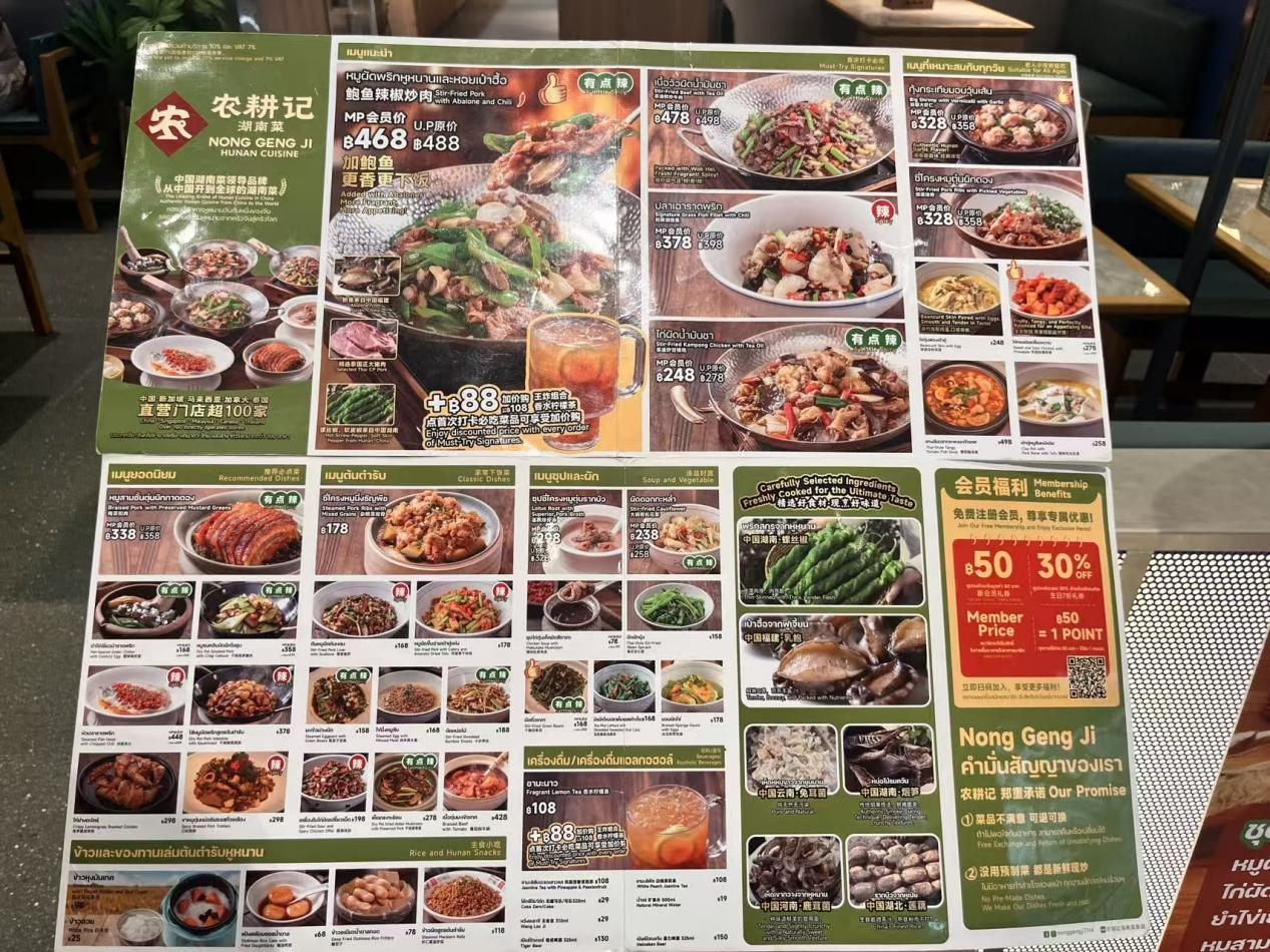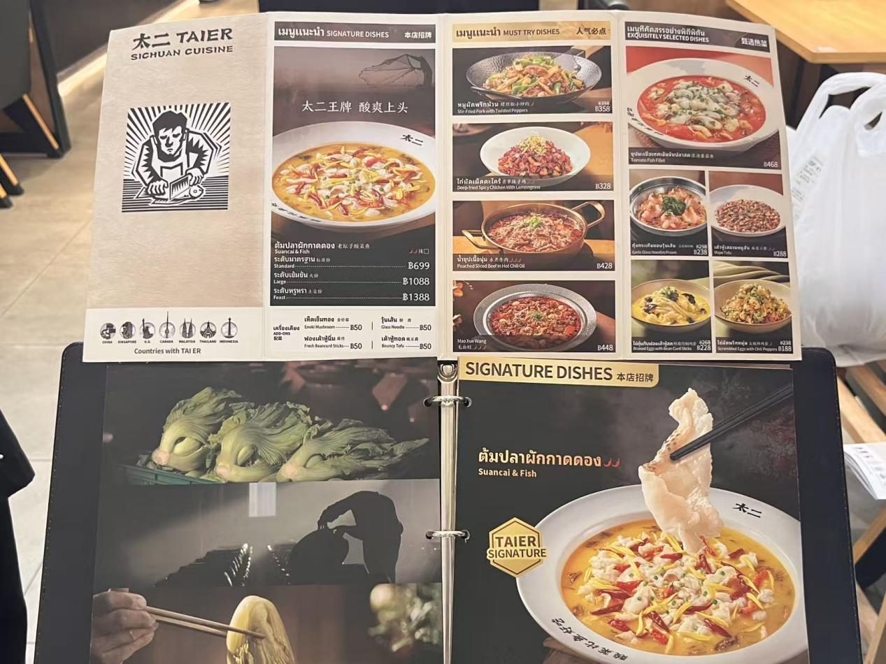 例如,湘菜品牌农耕记国内门店售价68元的“鲍鱼辣椒炒肉”,在曼谷标价高达488泰铢,折合人民币约107元;太二酸菜鱼的标准份则从118元攀升至699泰铢(约153元)。