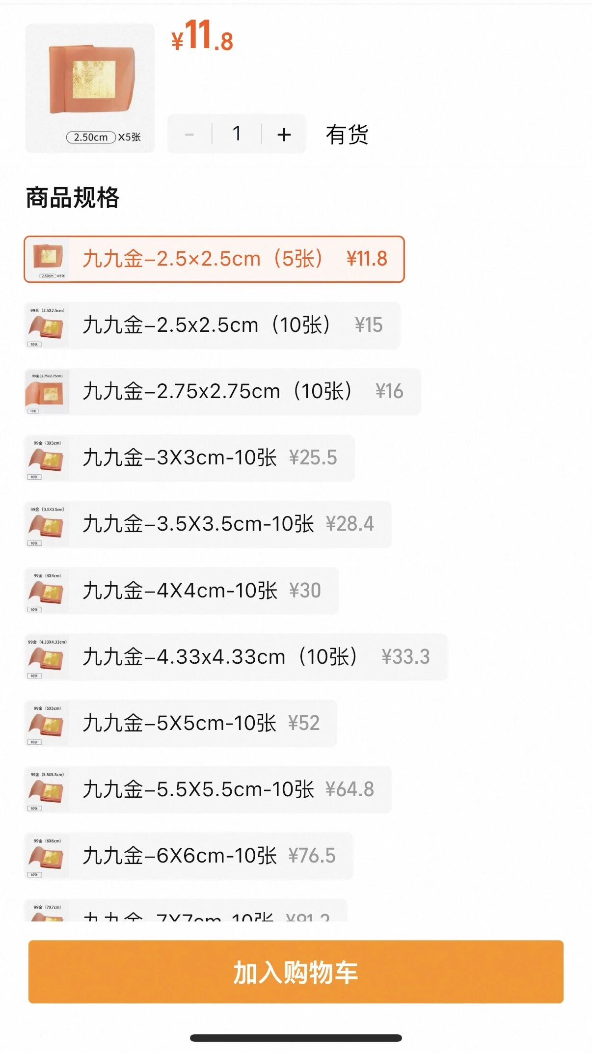 在电商平台上,金箔的产地亦以南京居多。《消费者报道》发现,一款产自南京永箔金箔厂、尺寸为2.5厘米×2.5厘米的24K纯金箔,5张售价仅11.8元,对比如今克价上千的黄金,“拥有”的门槛大幅降低。