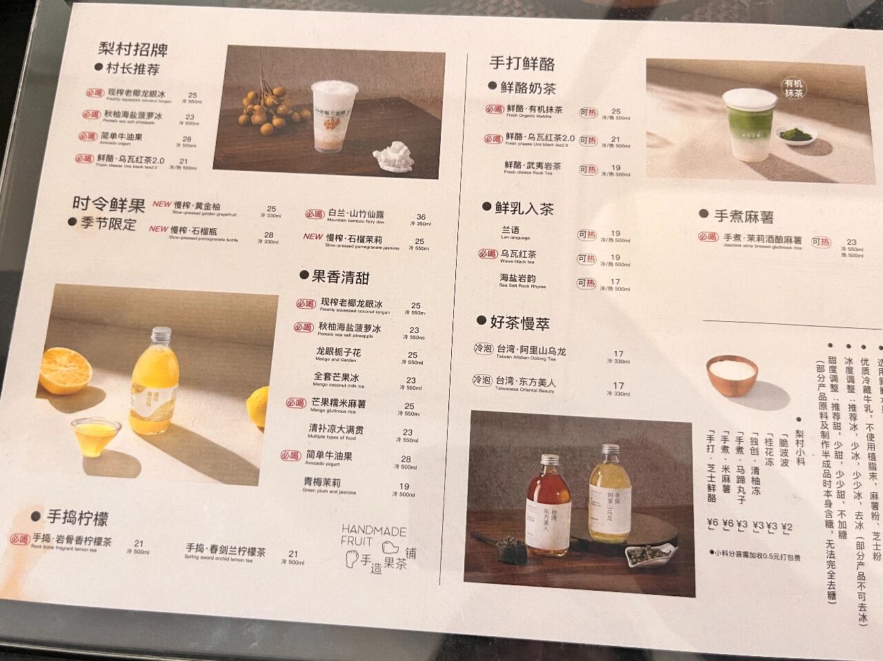 除了效率之外,大量鲜果原料的另一个问题是品控难以稳定。鲜果品质天然存在波动。记者也注意到,今年门店曾因水果品质不好而提前下架了“黄桃栀子花”;在外卖平台差评中,也有消费者反馈,在不同门店下单了同一款饮品“慢榨黄金柚”,口感差异巨大,对此梨村茶铺解释称,这是由于“柚子太熟太甜导致”。