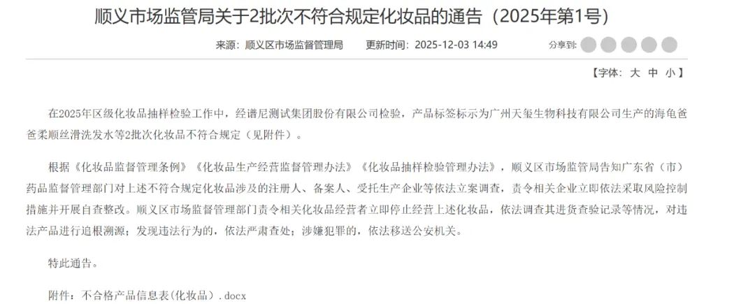 同日下午,当记者再次登录北京市顺义区市场监督管理局官网时发现,尽管通过关键词仍可检索到“海龟爸爸”相关条目,但具体通告页面已无法正常访问。