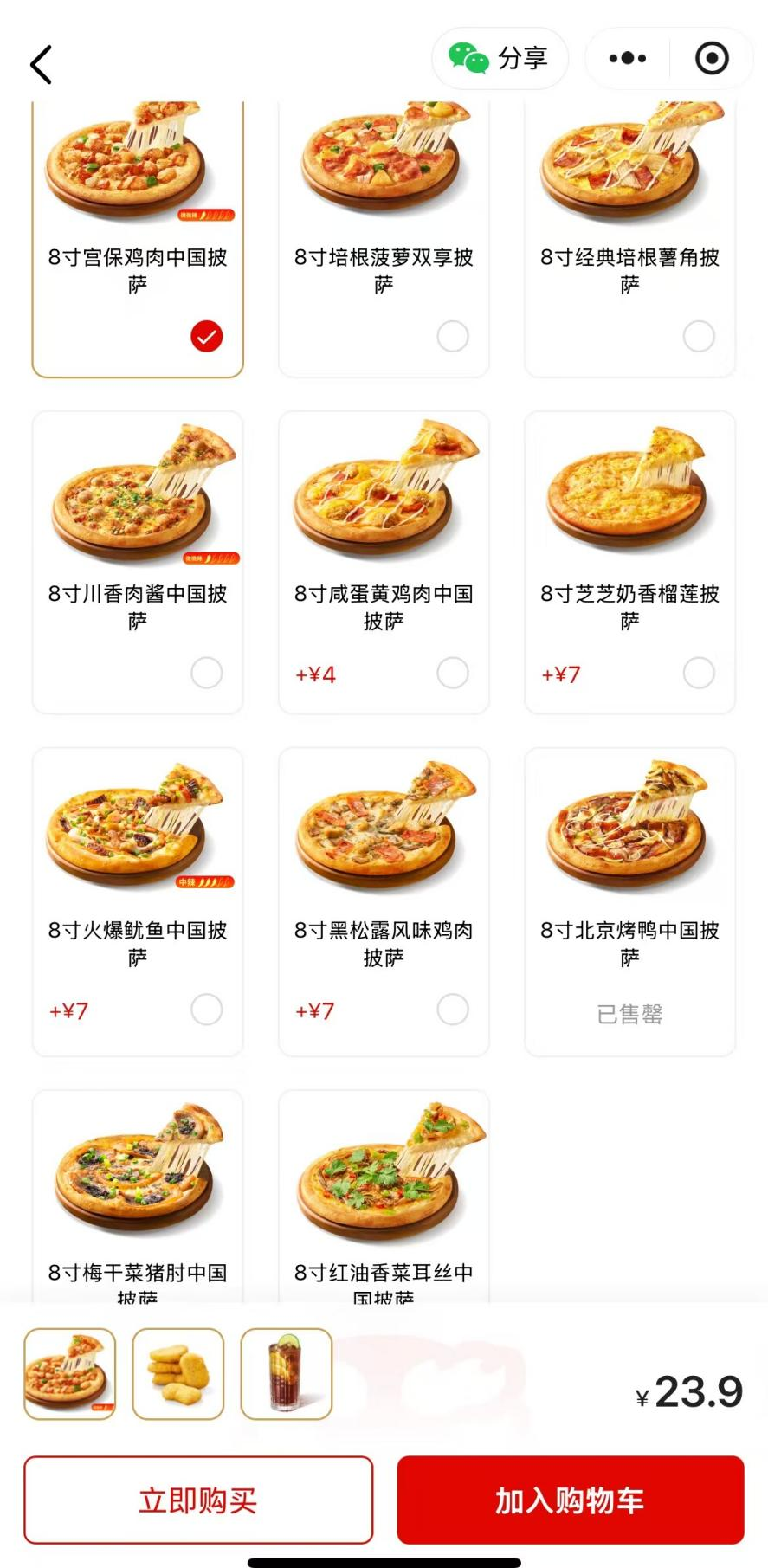 在产品定价上,塔斯汀也延续了其一贯的性价比路线。8寸披萨的单点价格在18至28元之间,披萨小食饮品三件套价格23.9元起。