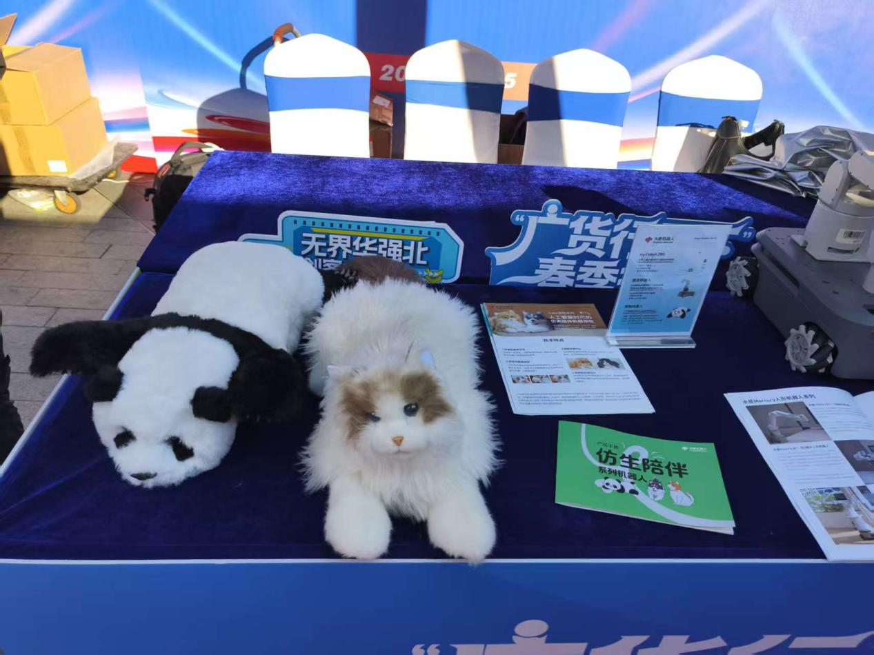在现场吸引众多年轻消费者,还有大象机器人科技的仿真陪伴宠物metaCat、metaPanda,它们外形如毛绒玩具,却能动会叫,柔软的触感与AI互动,让它们更贴近真实宠物。