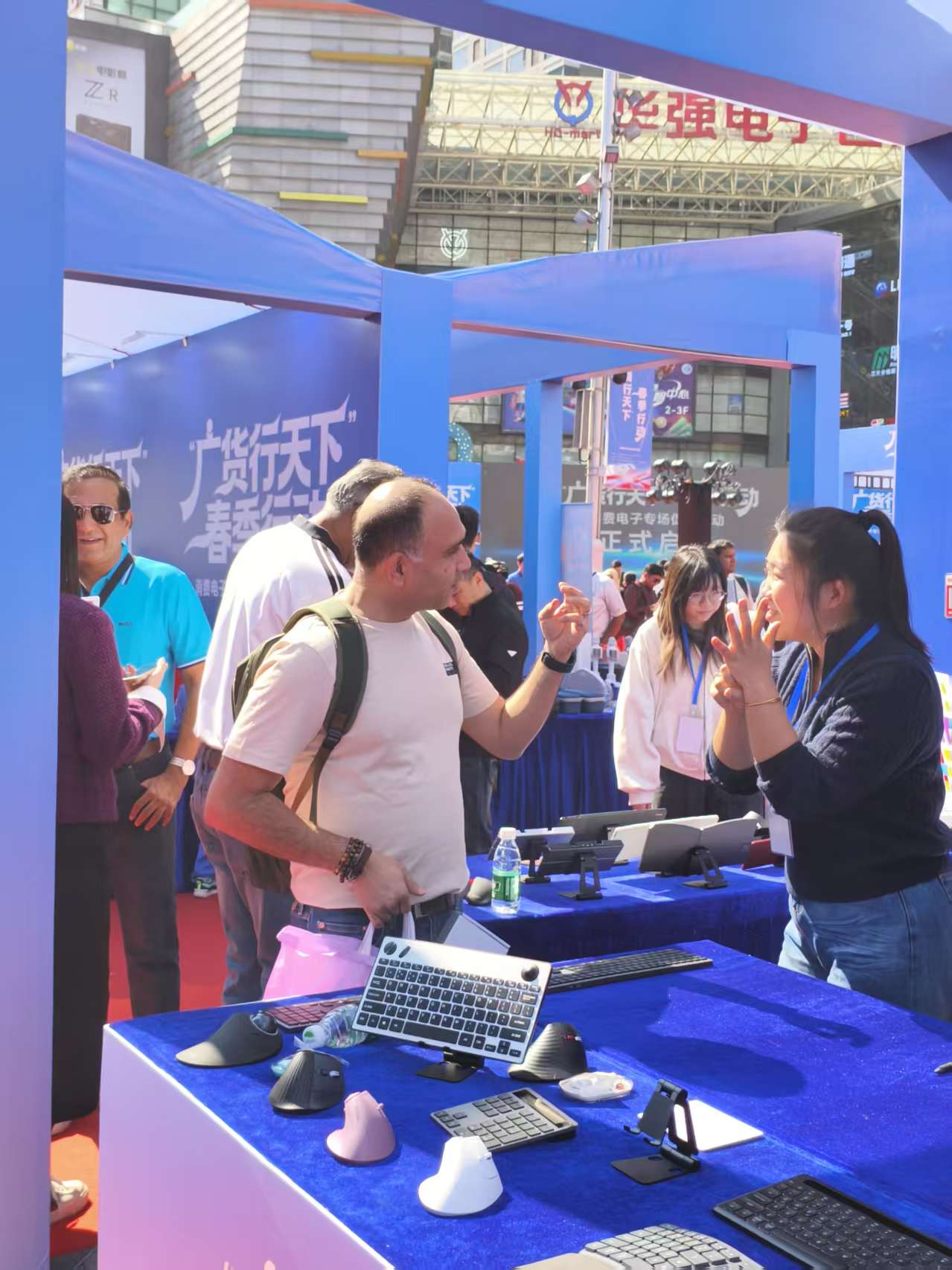 当天活动中的50个精品展位前一直人潮涌动,不时有不同肤色的国际采购商熟练地验货、询价、下单。“这里的产品迭代速度令人惊讶,总能找到最有性价比的科技解决方案,”一位中东客商说道。