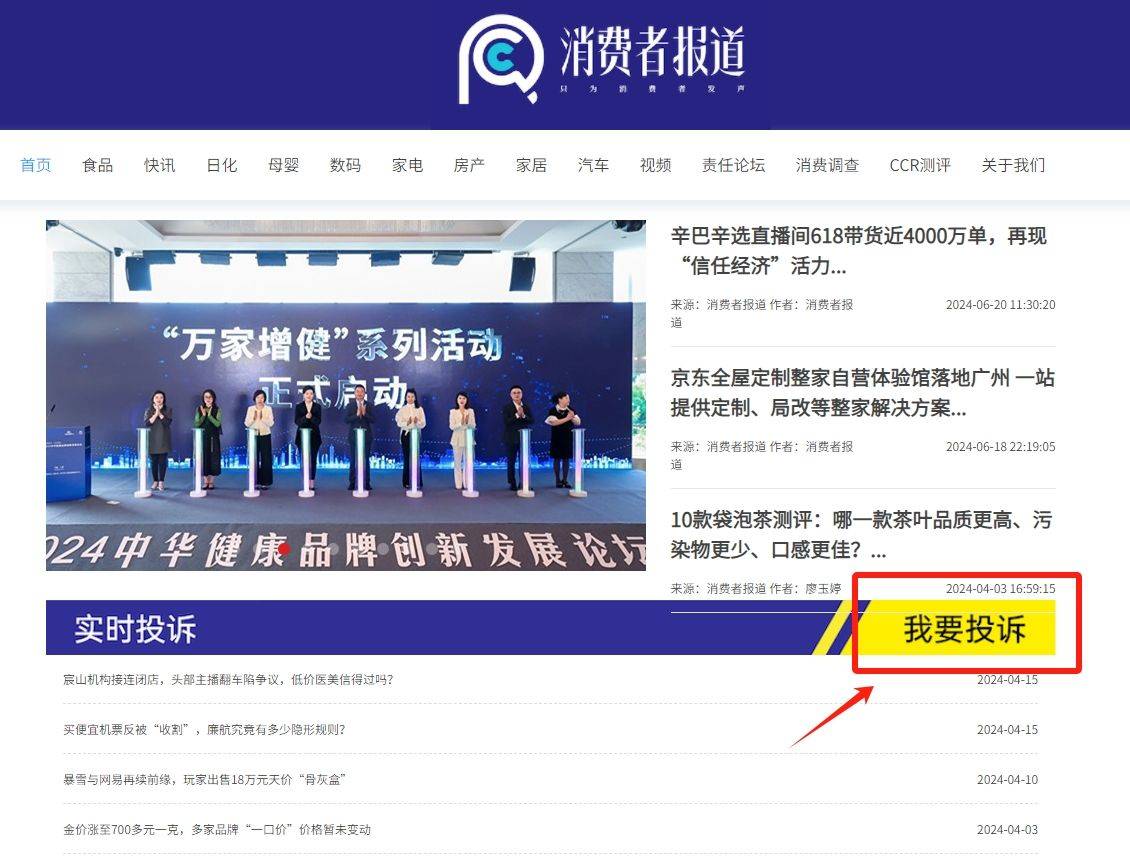 比如,通过小红书私信、抖音私信、微博私信、微博正文带上“@消费者报道”、微信公众号后台留言、点击《消费者报道》官方网站中的“我要投诉”等方式,向《消费者报道》反映问题、提供线索。此外,也可以直接在国家市场监督管理总局缺陷产品管理中心官方网站投诉。