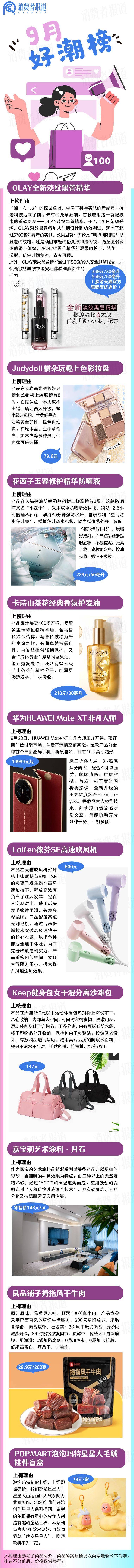 为此,《消费者报道》特别设置了“好潮榜”,每月整理发布一次,这是今年第九期“好潮榜”。顺带一提,“好潮榜”不推荐商品,我们只是好物的搬运工,请大家理性消费喔。