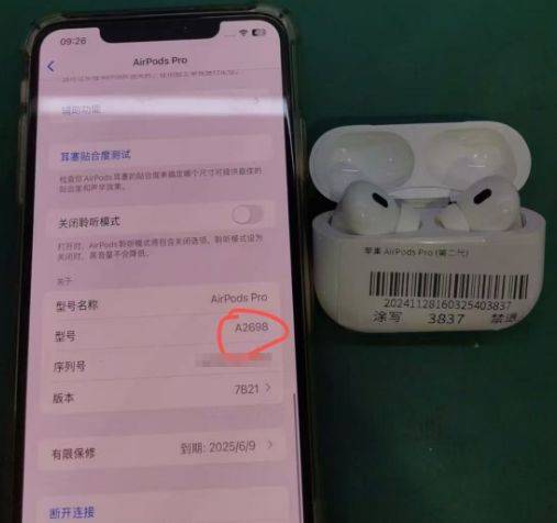 郑先生的耳机型号为A2698,属于2022年推出的AirPods Pro(第二代)