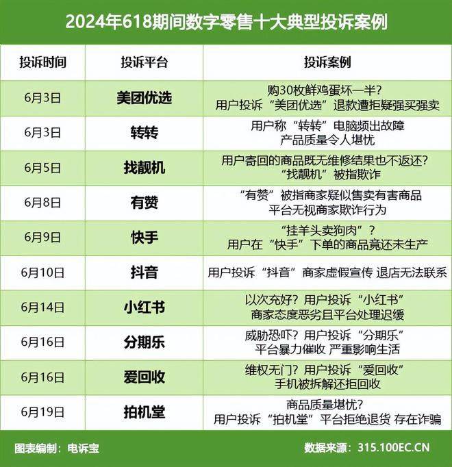 值得一提的是,网经社电子商务研究中心发布的《2024年“618”中国电子商务用户体验与投诉数据报告》显示,在27家数字零售上榜平台中,拍机堂的投诉量排在第16位。值得关注的是,拍机堂在报告中上榜2024年618期间数字零售十大典型投诉案例,具体投诉案例为“商品质量堪忧?用户投诉‘拍机堂’平台拒绝退货存在诈骗”。