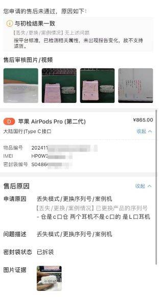 去年12月,他花费800多元在拍机堂购买了一副Type-C接口的苹果AirPods Pro(第二代)耳机。到货后,他发现耳机充电仓为Type-C接口,这个接口的AirPods Pro(第二代)最早在2023年推出,而耳机型号显示为A2698,属于2022年推出的AirPods Pro(第二代),该耳机型号的耳机充电仓使用Lightning接口,因此郑显示怀疑他手上耳机和耳机充电仓并非原配。