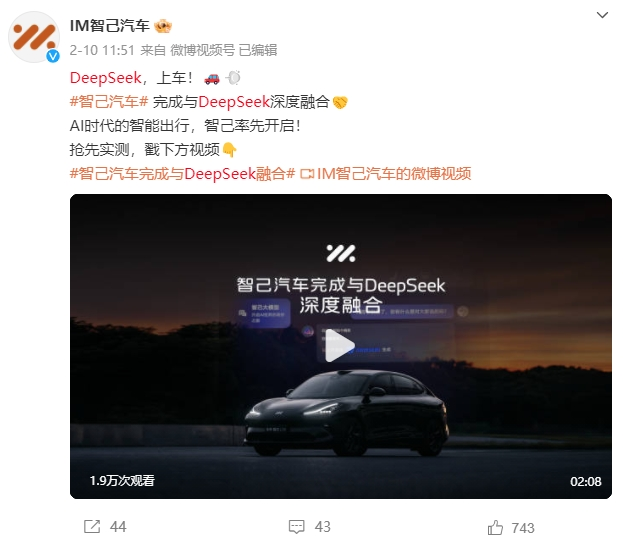 上汽宣布以高端新能源品牌智己为载体,在引入DeepSeek大模型的同时,还强调与豆包、通义等大模型合作,深度联合训练构建多场景插拔式AI矩阵平台。