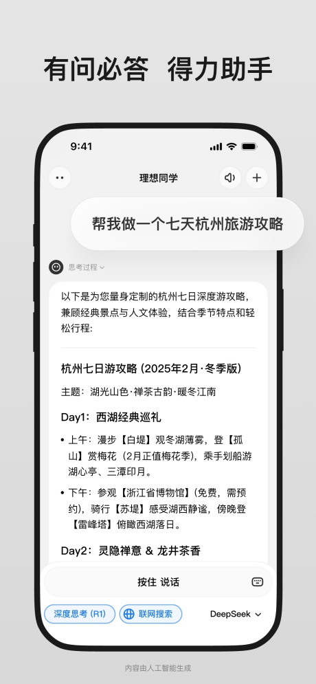 实际上,在智能化第一梯队中,目前只有理想汽车一家接入了DeepSeek。2月19日,理想汽车宣布旗下人工智能助手理想同学App全面接入DeepSeek R1&V3 671B满血版。理想汽车方面表示,接入DeepSeek模型后,能够为用户在对话问答中提供更好的复杂逻辑推理和深度思考能力,将进一步助力人工智能战略的落地。