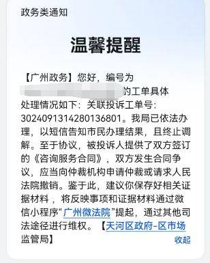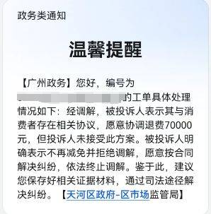 有物文化公司注册地市场监管局回复夏薇的短信显示,有物文化向监管部门表示,投诉人(注:夏薇)未接受退费70000元的方案,该公司不再减免并拒绝调解,愿意按合同解决纠纷。但夏薇对《消费者报道》记者称,从未收到有物文化有关退费及调解的沟通。目前,她正着手向有物文化提起民事诉讼。