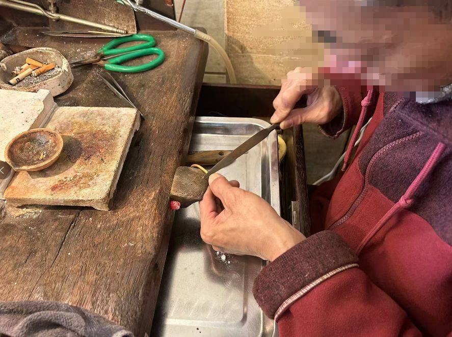 除了追求款式上的简约,有看重性价比的消费者将目光放到了手工打金上。他们不再追求大品牌,而是自购金条或者将旧的金饰交给打金师傅重新加工。这种选择的好处是打金的工费远远低于品牌专卖店的饰金工费。