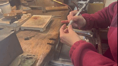 打金师傅正在加工一只古法素圈金手镯(消费者报道记者摄)