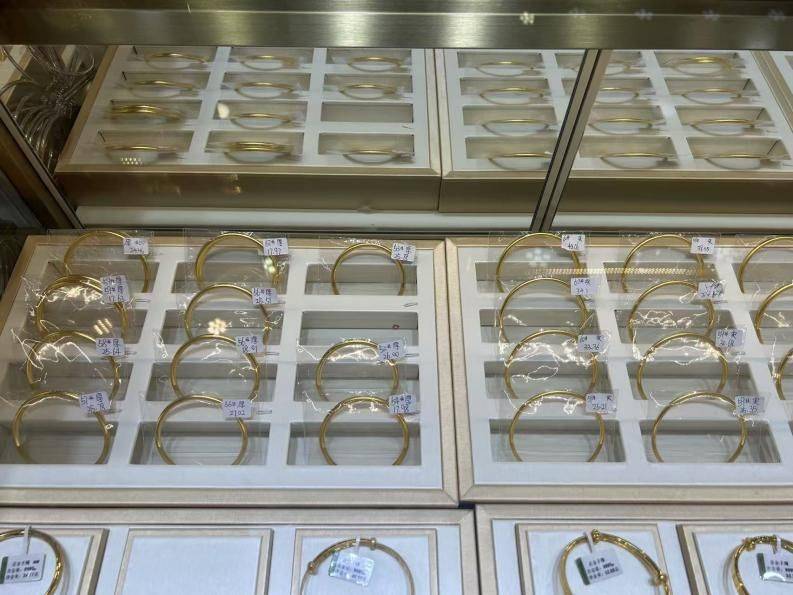 记者在展示柜中注意到,刘女士心仪的古法素圈金镯虽然看着比较“纤细”,但实心款的克重基本在25g以上。这个克重几乎是轻薄易变形龙凤镯的3倍。