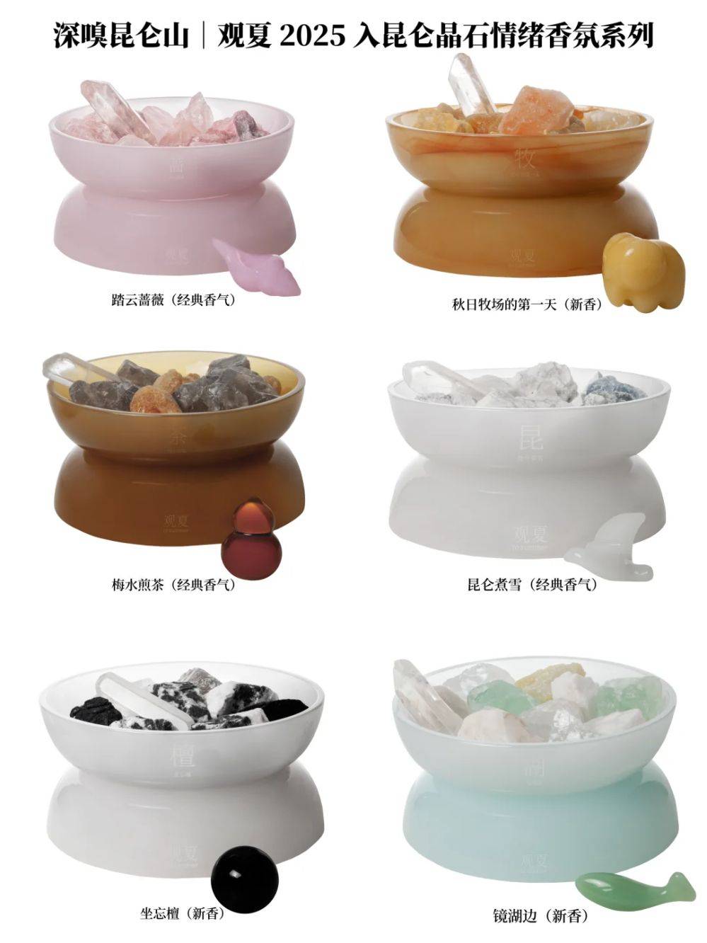 (图说:近期,观夏推出“深嗅昆仑山 入昆仑山晶石情绪香氛系列”,创作背景来源于巍峨昆仑山。)