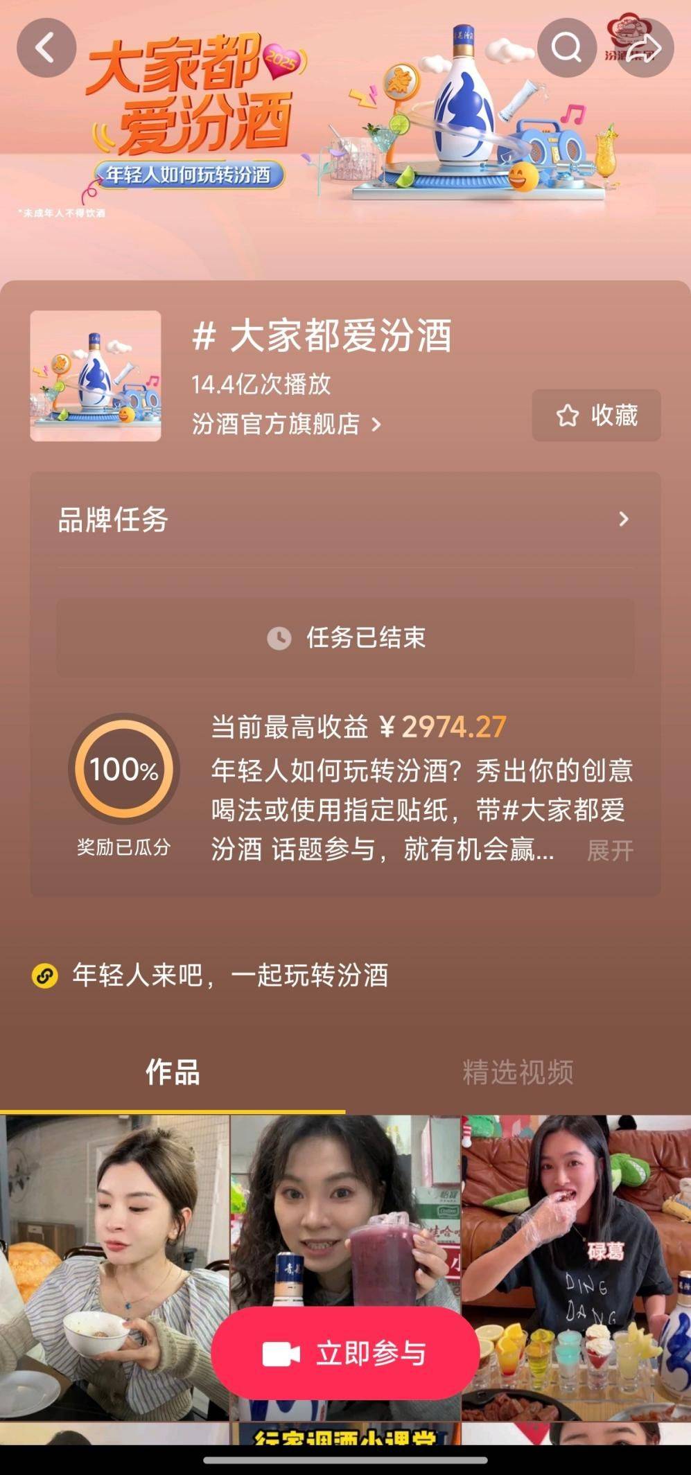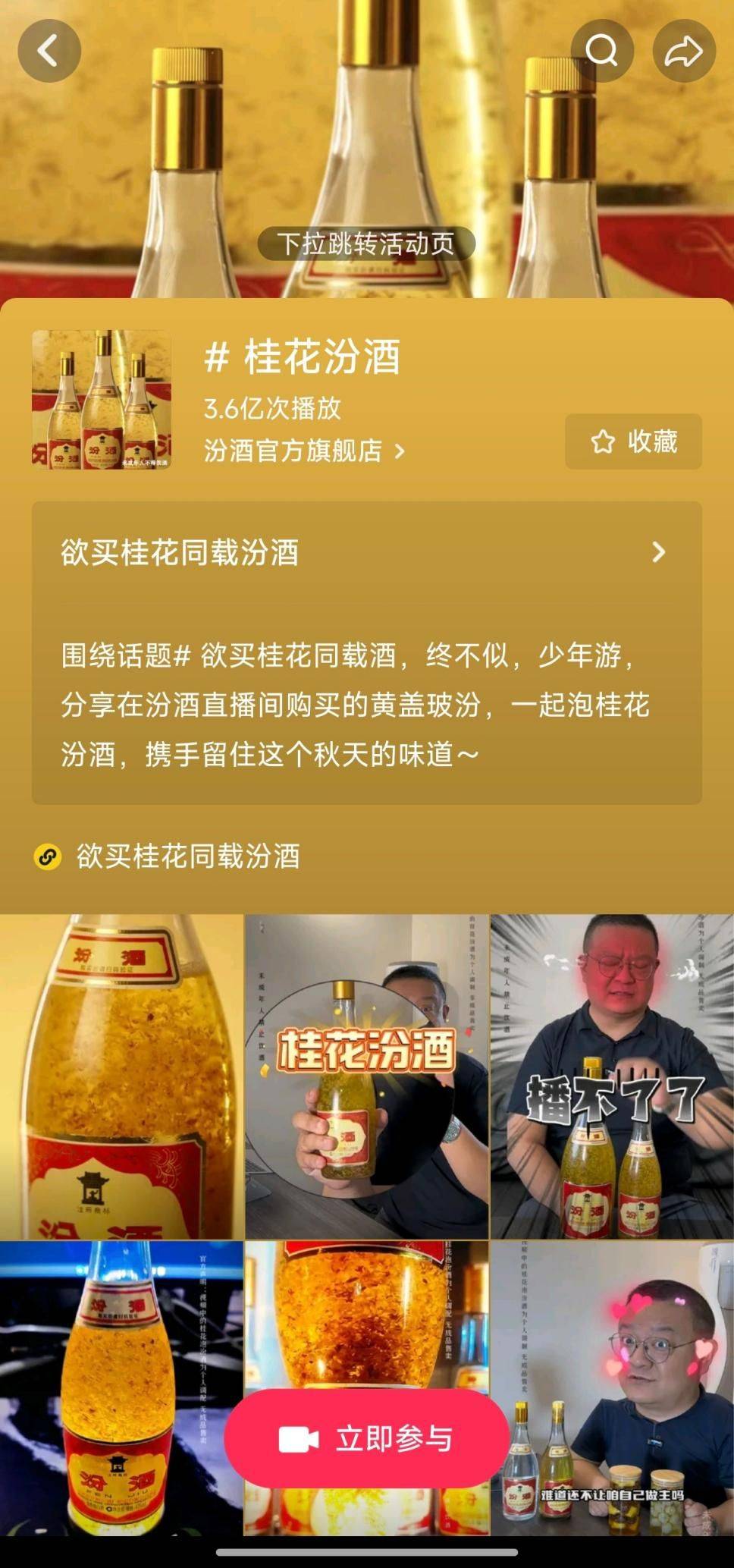 早在2023年春节期间,一场“大家都爱汾酒”抖音挑战赛酒在全网掀起了“汾酒热”,活动一经上线播放量突破3.2亿。2024年,#我们都爱汾酒 抖音挑战赛再次在全网掀起热潮,活动上线11天完美收官,播放量突破6.3亿次,成为全民参与的现象级热点。今年3月,#大家都爱汾酒 抖音挑战赛3.0版本重新回归,持续收获全网分享热潮,播放量突破14.4亿次。