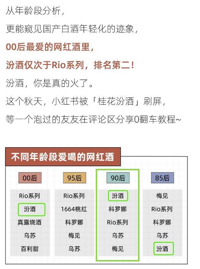 通过桂花汾酒的流行热潮,年轻人试图告诉白酒市场,在他们的眼中,白酒不是只能搭配大猪蹄子和花生米的中老年标配,创新性的白酒喝法与表达方式,带给年轻人真正的松弛与快乐。