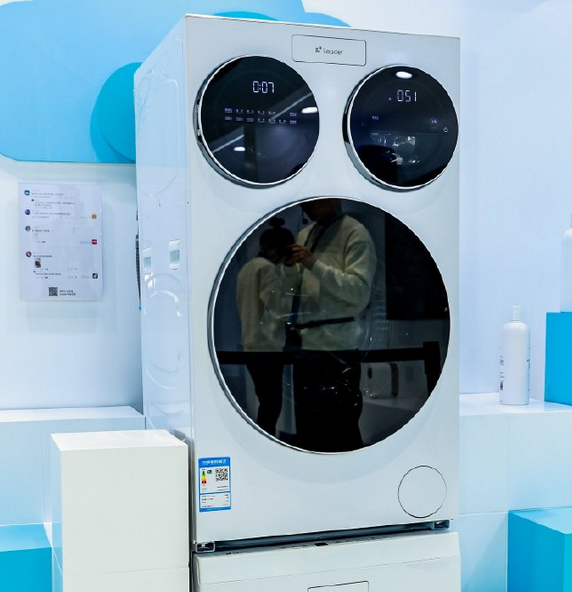 在海尔的展区,海尔带来了酷似米老鼠设计的三筒洗衣机,满足了用户一个洗衣服、一个洗内衣、一个洗袜子的分区洗需求。据了解,三筒可以满足独立运转和独立水路。