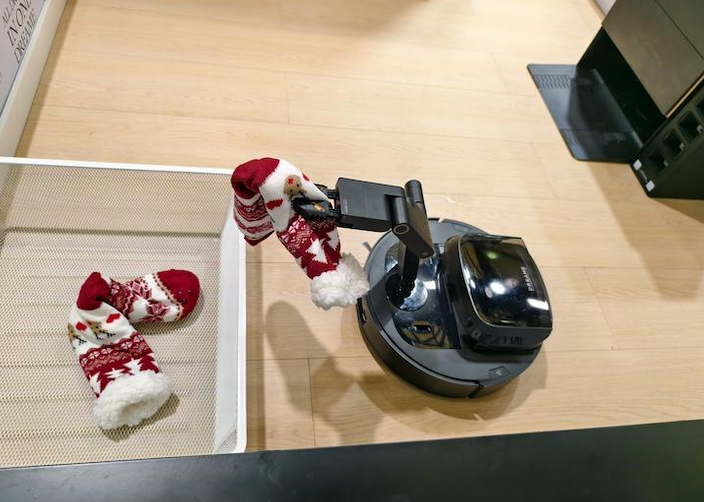 在追觅的展区,带有机械手的追觅X50 Ultra 扫地机器人,可以自主整理玩具、拖鞋,实现归类收纳的功能。