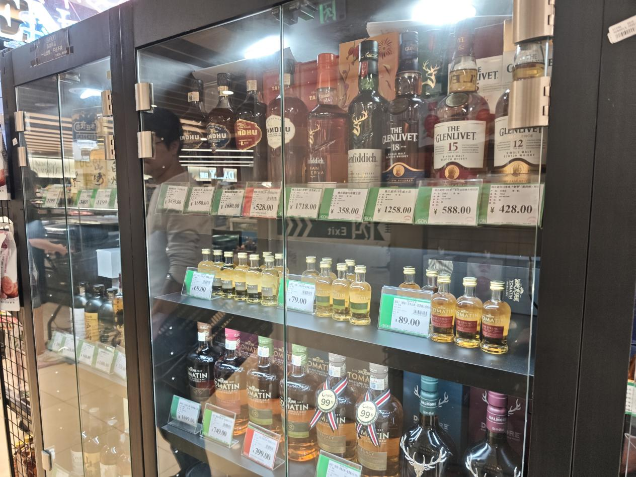 4月10日,《消费者报道》记者走访广州市内多家线下商超、烟酒店发现,货架上的威士忌产品均为进口品牌,常见有麦卡伦、尊尼获加、芝华士等,尚未见国产威士忌产品的身影。