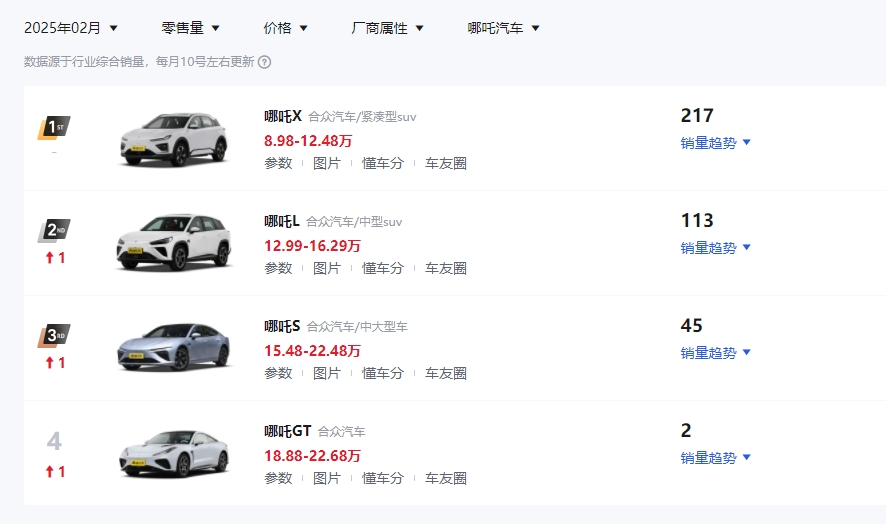 ▲哪吒汽车今年2月销量情况(来源:懂车帝)