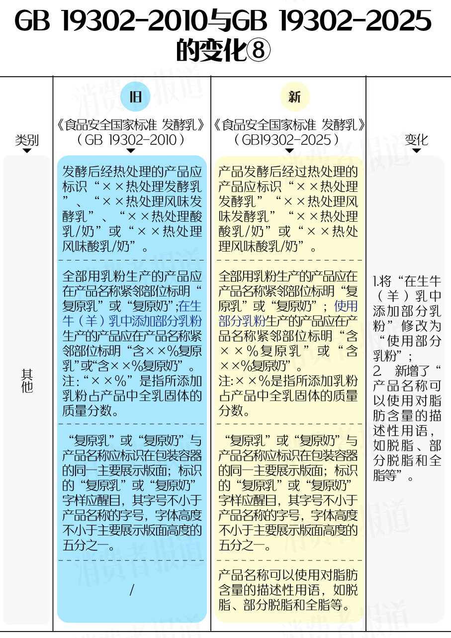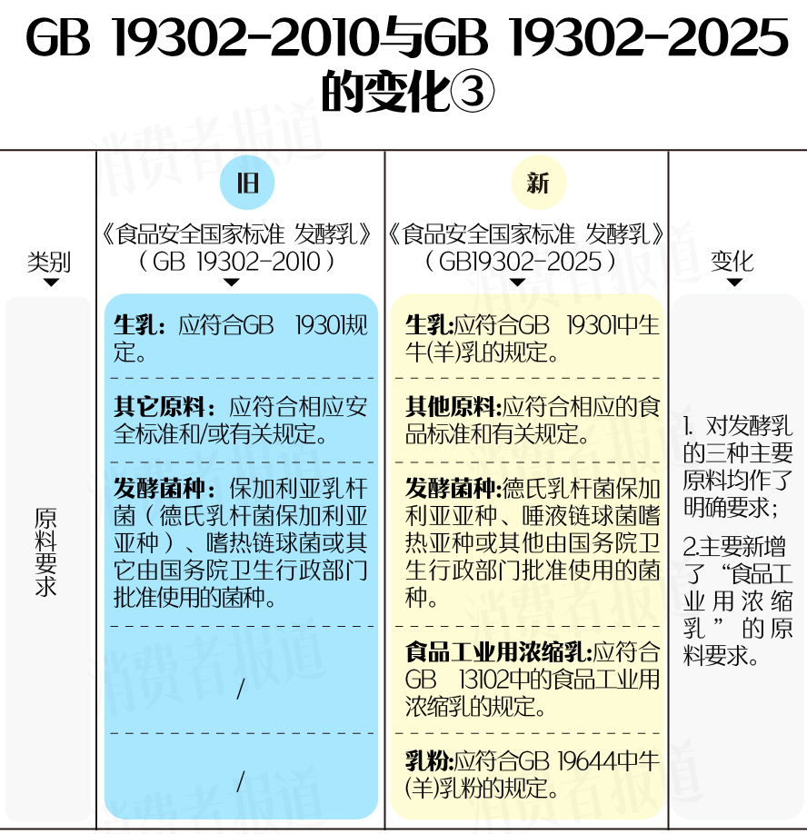 距离酸奶新国标正式实施倒计时不足半年,新标准有哪些变化?这些变化将如何影响消费者日常购买和饮用的那一杯酸奶?《消费者报道》记者逐一梳理了GB 19302-2025的修订要点,并与GB 19302-2010进行详细对比,一起来看看新旧国标有何不同。