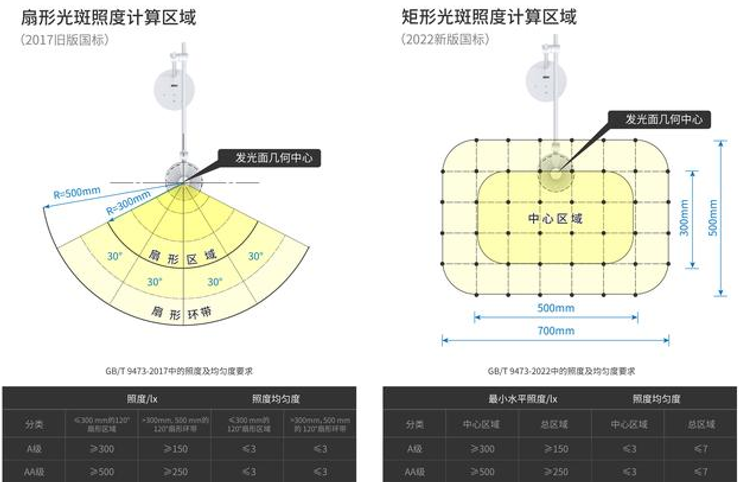 国标GB/T 9473—2022《读写作业台灯性能要求》(下称“新国标”)对照度及均匀度作出了新要求,替代了旧标准GB/T9473-2017《读写作业台灯性能要求》(下称“旧国标”)。