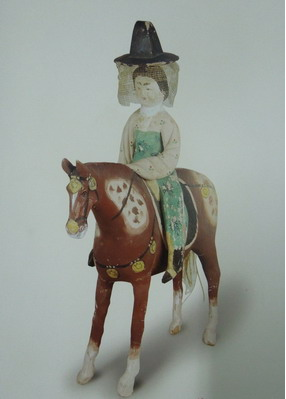 新疆吐鲁番出土的戴帏帽骑马女佣 图源:河南博物院官网