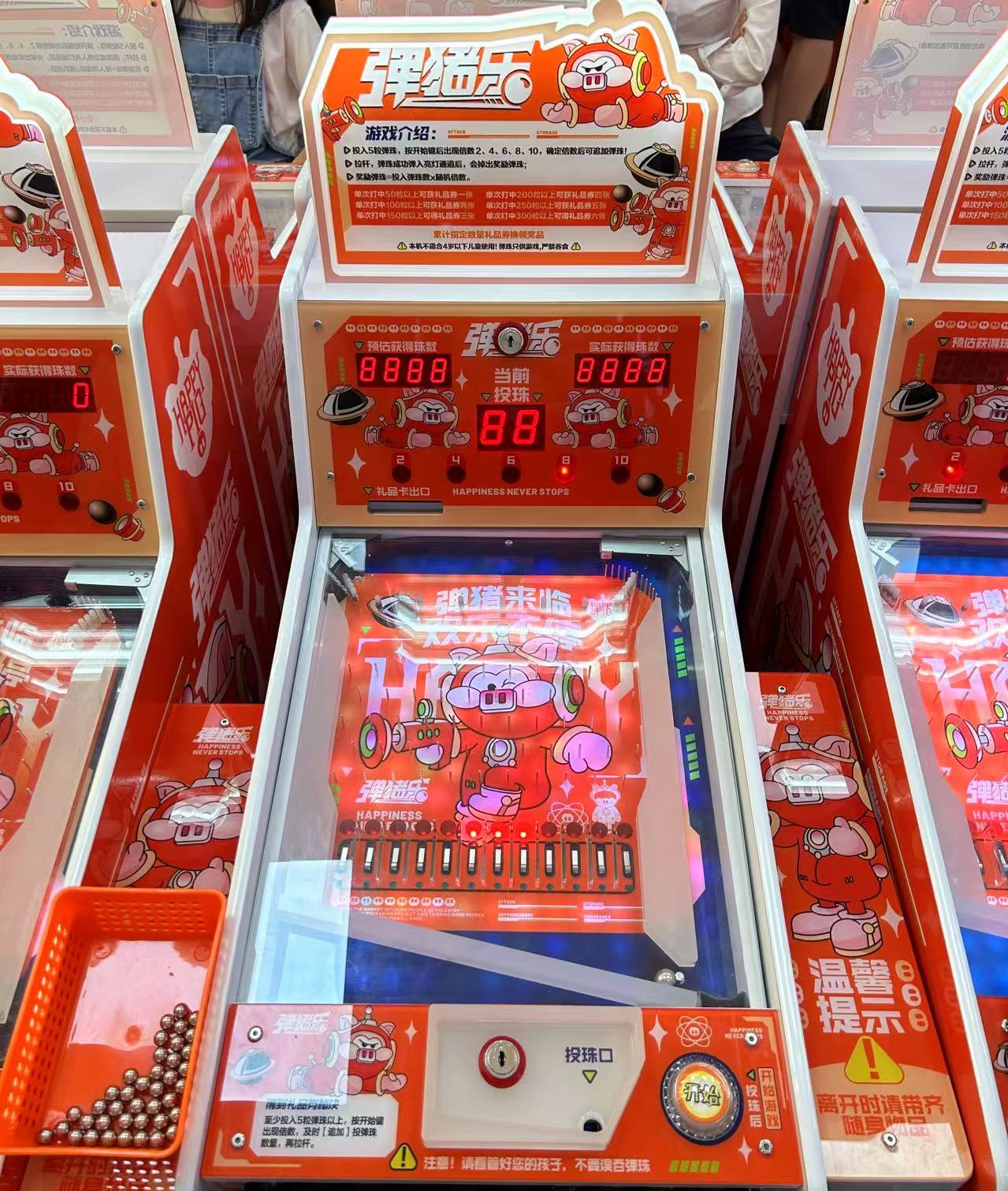 弹珠机的玩法对孩童颇具吸引力:弹珠落入亮灯通道,可以赢得对应倍率的珠子;单局赢够一定量的珠子,还能额外获得用于兑换礼品的礼品券。