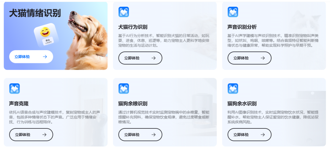 更有公司为萌宠的身心健康设置了全套智能系统,利用AI技术识别分析宠物行为与情绪,及时发现宠物的焦虑、烦躁等情绪问题,并给出解决方案。例如这种智能系统会基于AI声学建模与声纹识别技术,通过声音精准识别宠物叫声类型,智能判断它们的情绪状态与健康异常,以便及早干预。当宠物因车辆颠簸或外界环境变化而产生焦虑、烦躁等情绪时,系统能够自动调节车内温度、灯光,播放舒缓的音乐或主人的语音,以安抚宠物情绪。系统还能与交互式玩具结合,当宠物处于焦虑状态时,系统就会引导宠物进行适量的运动,让它们兴奋起来。而宠物过于兴奋时,系统又会调整玩具的互动节奏,避免过度刺激。另外,在宠物就医时,AI情绪识别技术可辅助兽医判断宠物的疼痛或应激状态,特别是在术后康复或慢性病管理中起到重要作用。