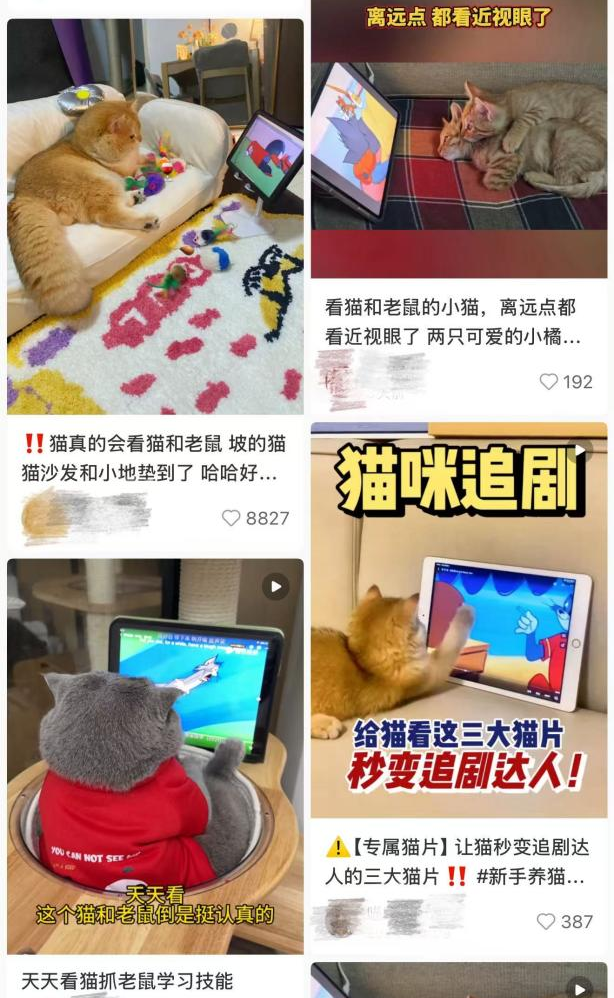 社交平台上,猫狗的主人们很早就摸索出宠物们喜欢看的动画片,例如大名鼎鼎的《猫和老鼠》、《布鲁伊》(讲述蓝色澳洲牧牛犬布鲁伊一家四口欢乐生活的动画片)。铲屎官们发现自家毛孩子对这些动画片表现出浓厚兴趣,总是驻足乖乖观看,于是纷纷给毛孩子看片子,还拍下它们追剧时认真的模样。