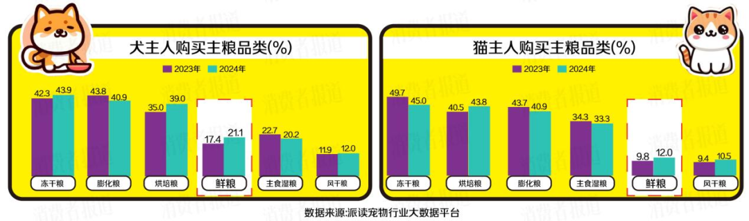 鲜粮因不依赖防腐剂、诱食剂或人工合成营养素,可降低宠物过敏、肥胖等健康问题的风险,受到消费者青睐。