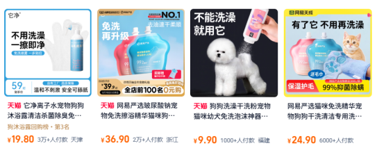 (图源:电商平台的宠物免洗类产品相关页面)