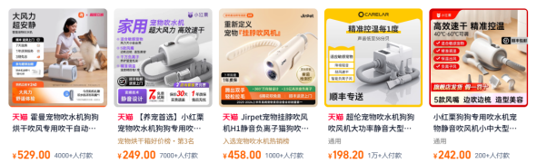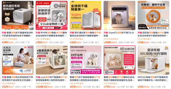 (图源:电商平台的宠物烘干机产品相关页面)