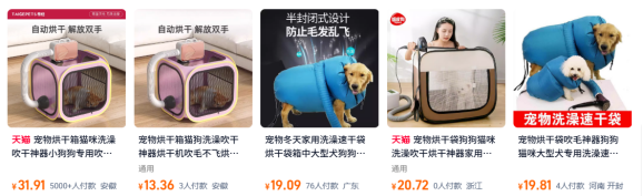 (图源:电商平台的宠物烘干袋产品相关页面)