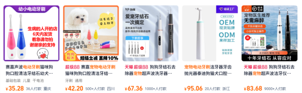 (电商平台的宠物电动牙刷产品相关页面)