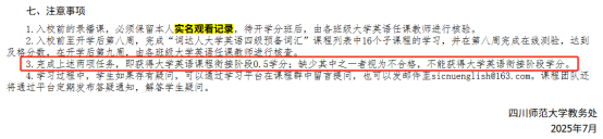区别于“自愿”路线,部分高校选择“刚性”安排,将衔接课程的学业表现纳入学分评定。比如,四川师范大学为2025级新生开设的《大学英语》衔接课程采取学分制,学生完成课程内容并通过在线测试(合格)才能获得对应的0.5学分。
