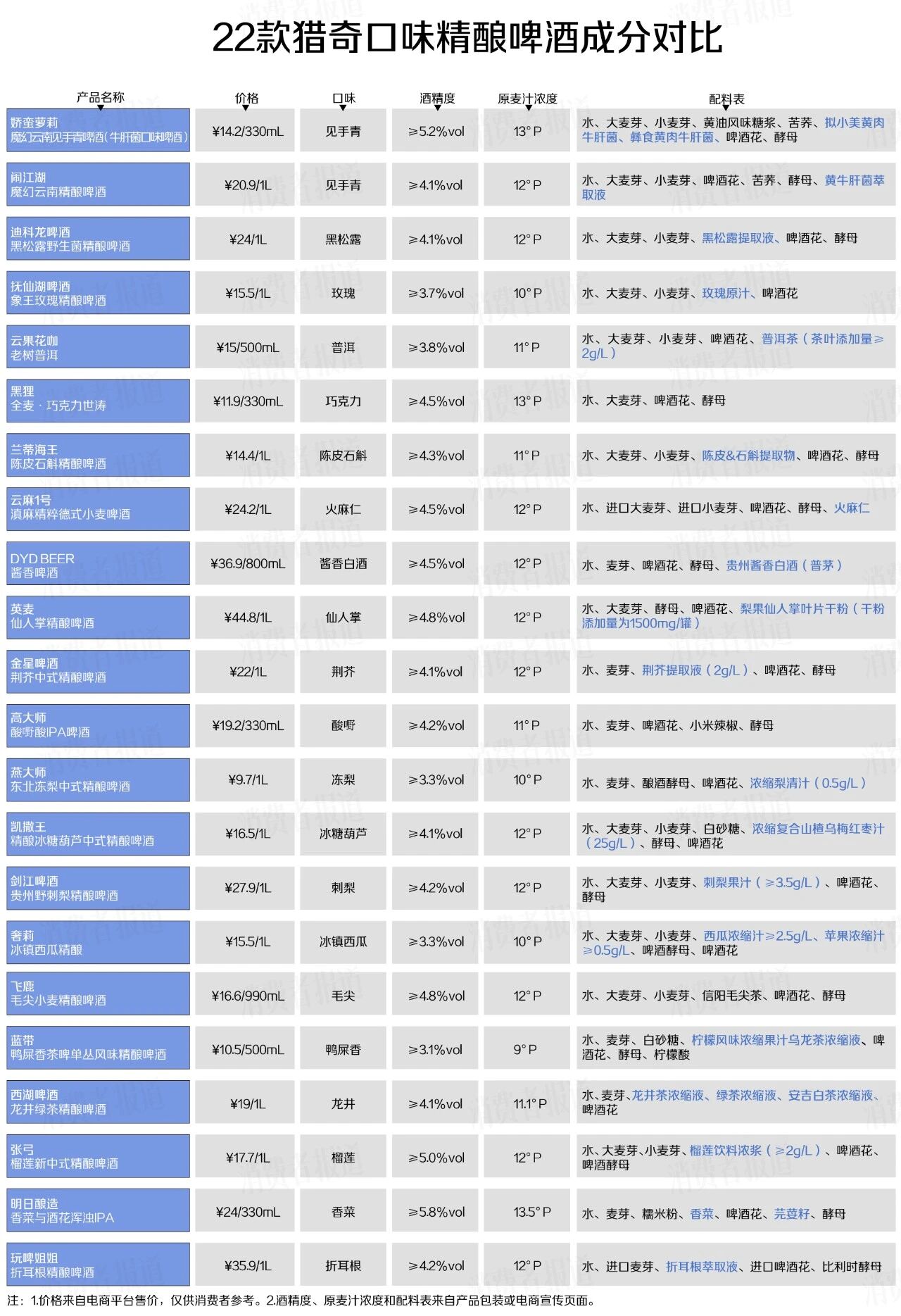 在22款对比产品中,仅8款标注了风味成分的具体添加量,占比不足4成,且添加量差异较大。例如,“凯撒王”添加的浓缩复合山楂乌梅红枣汁高达25g/L,“燕大师”使用的浓缩梨清汁仅为0.5g/L,两者相差达50倍。