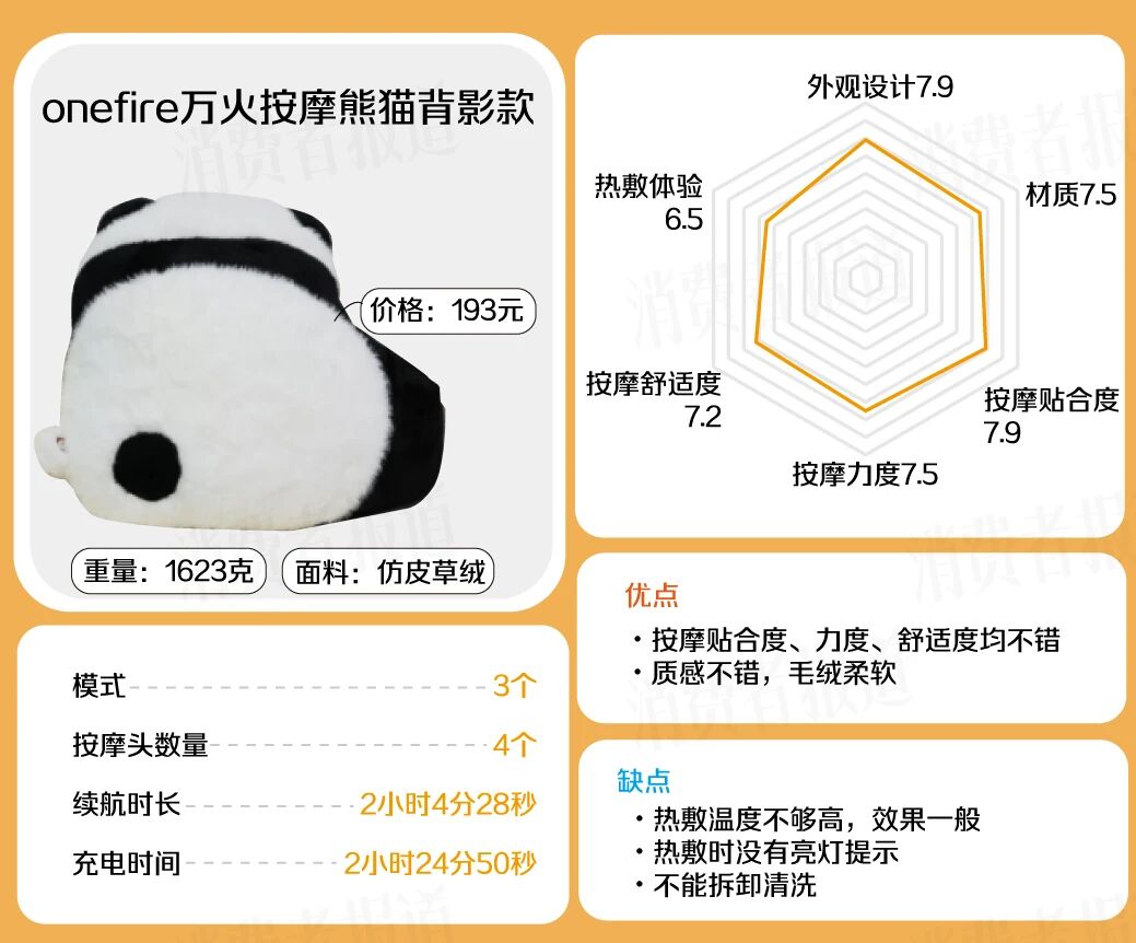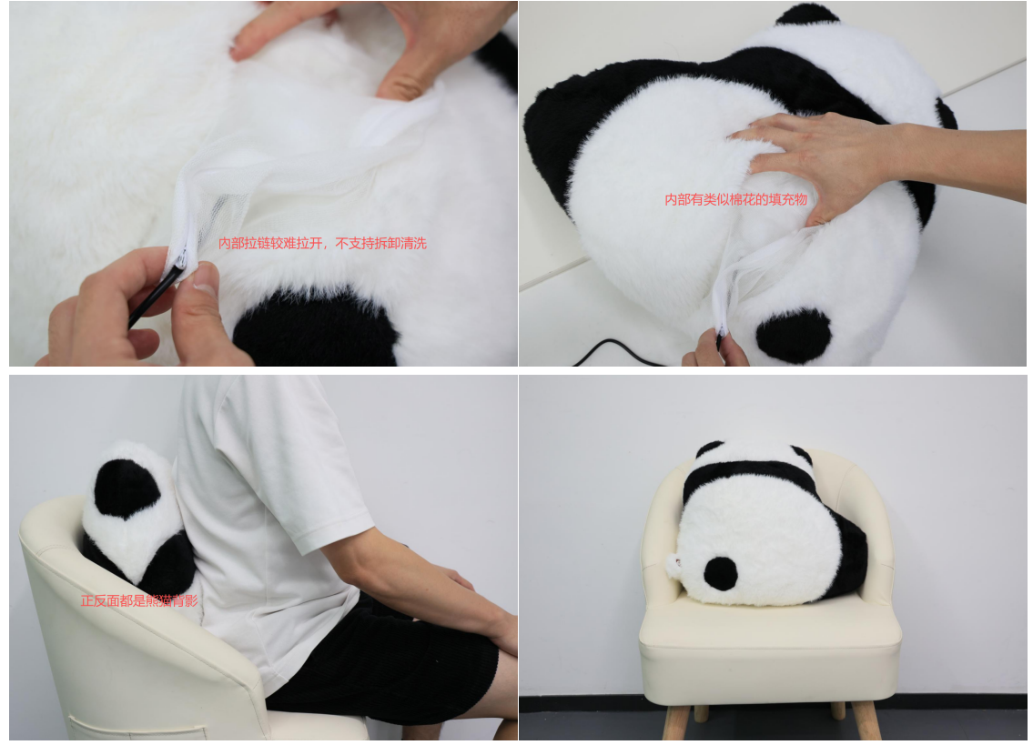 熙熙:整体贴合度还可以;对于不受力的“怕痛星人”而言,按摩力度适中,能缓解一点背部肌肉酸痛。如果有熊猫正面款的设计就更好了。