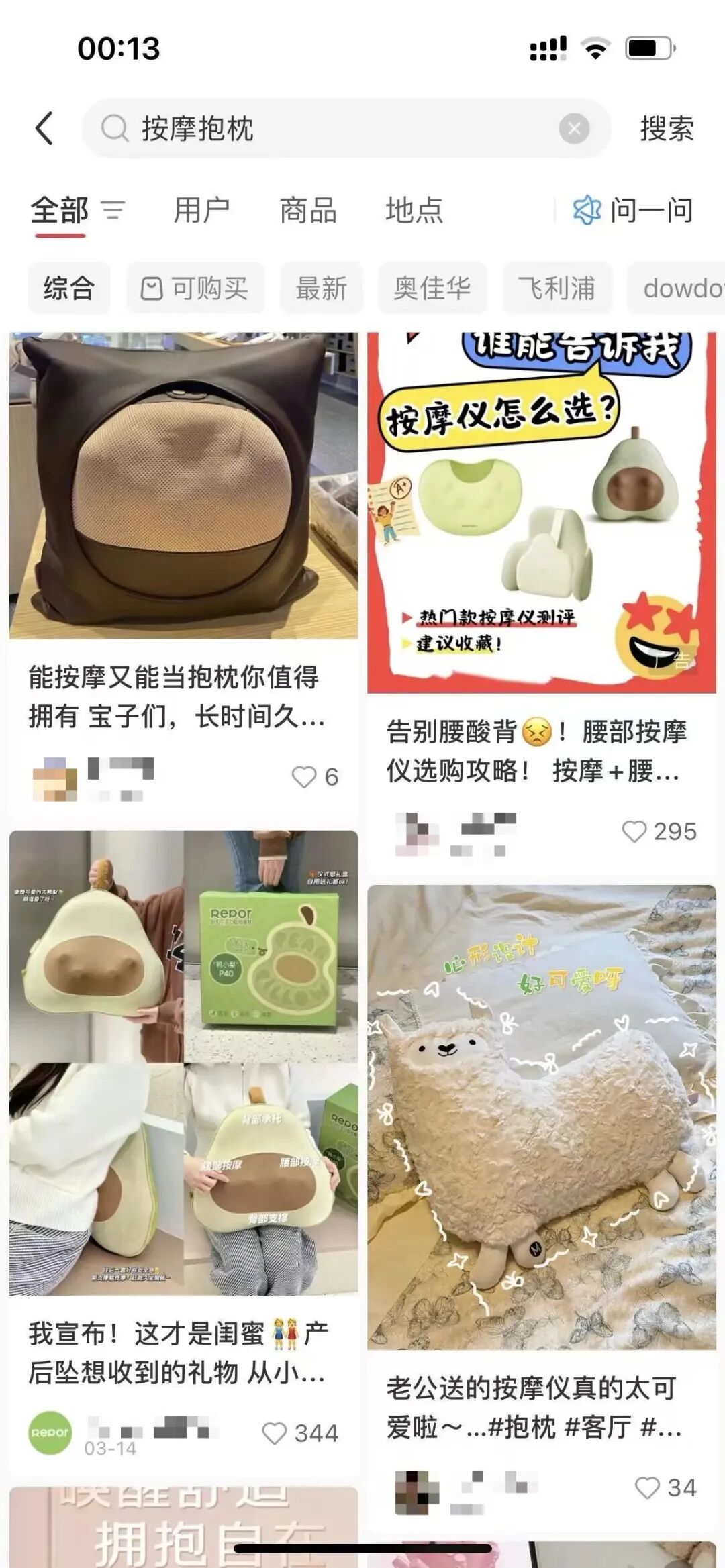 在社交平台搜索“按摩抱枕”(又称“按摩靠垫”),各种造型吸睛的产品刷屏:简约的办公款、治愈的卡通款、圆滚滚的云朵款……这些可爱的小家伙,精准戳中了年轻人的“职场痛点”,打开了“职场按摩”新思路:往办公椅一放,就能给久坐僵硬的肩颈、腰椎即时放松,把“摸鱼式按摩”变成日常。