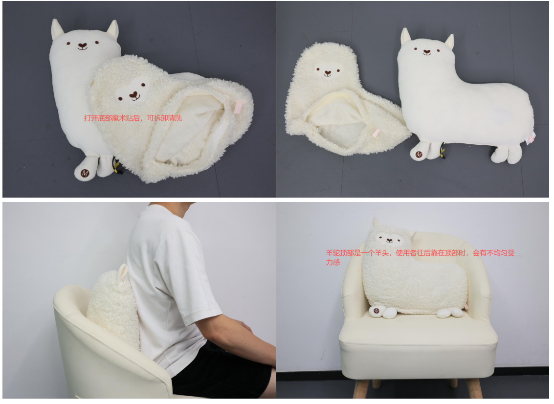 漫玉:这款多了脖子和头,很影响舒适度,靠着的时候觉得自己化身豌豆公主,羊驼的脖子像床垫里那颗豌豆,一直顶着侧腰,太难受了。