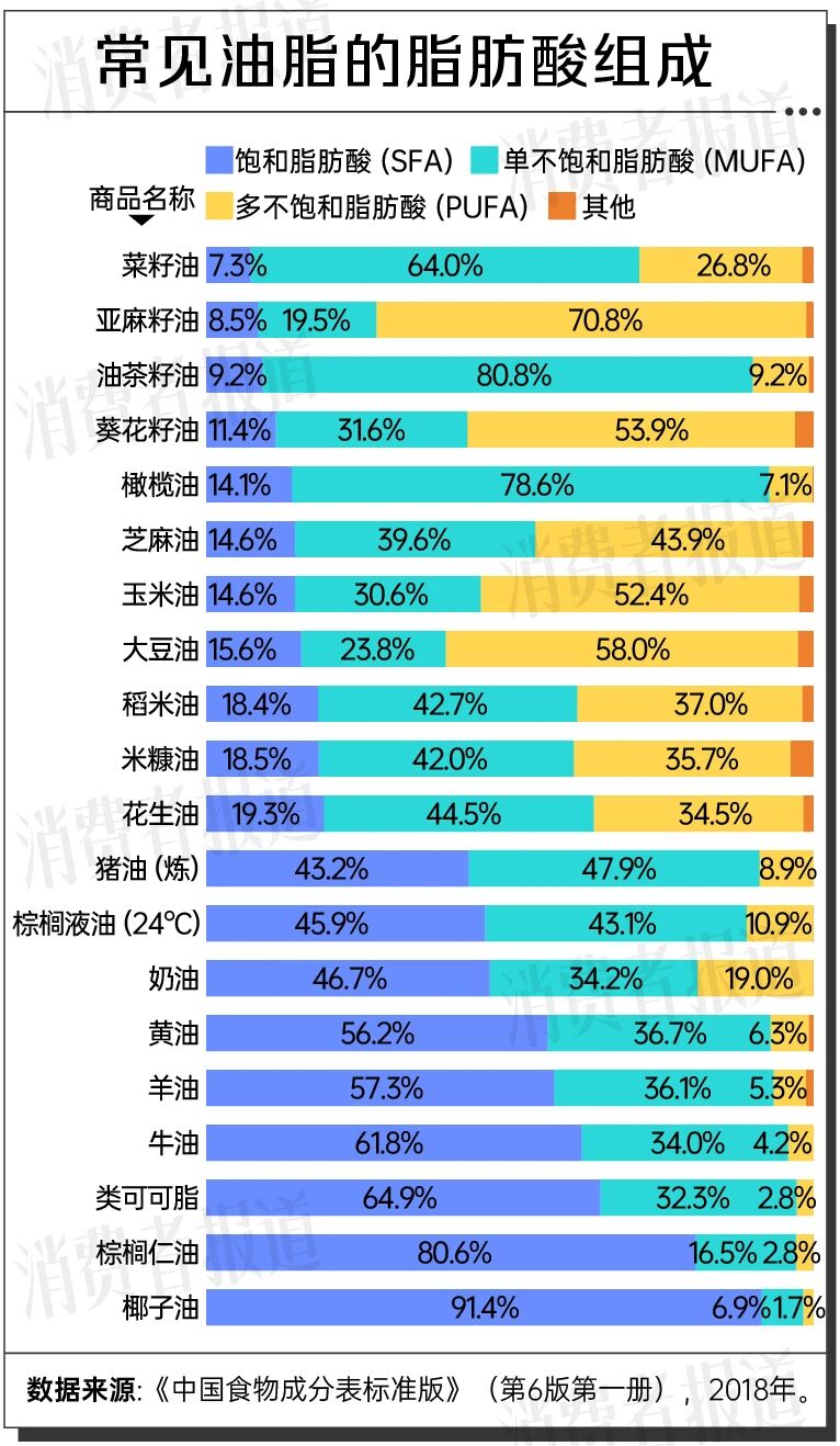 根据《中国食物成分表标准版》(第6版第一册)的数据,常见的食用油单不饱和脂肪酸和多不饱和脂肪酸的含量相差较大,几乎不存在脂肪酸构成完美的单一油脂。