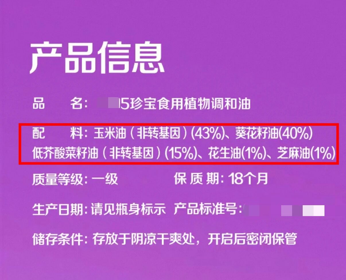 调和油因混合多种植物油,其原料来源比单一油品更为复杂,而市场上常见的标识方式,也增加了消费者辨别转基因成分的难度。