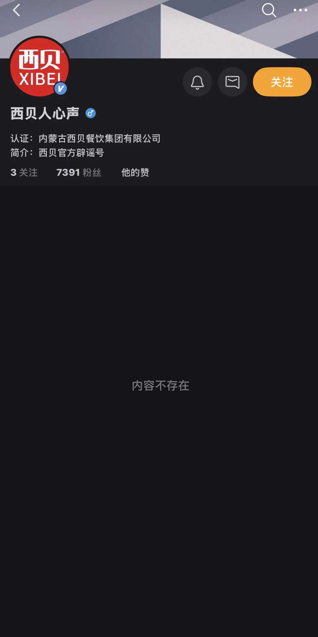 此前贾国龙发声的微博账号@西贝人心声 也已被禁言。