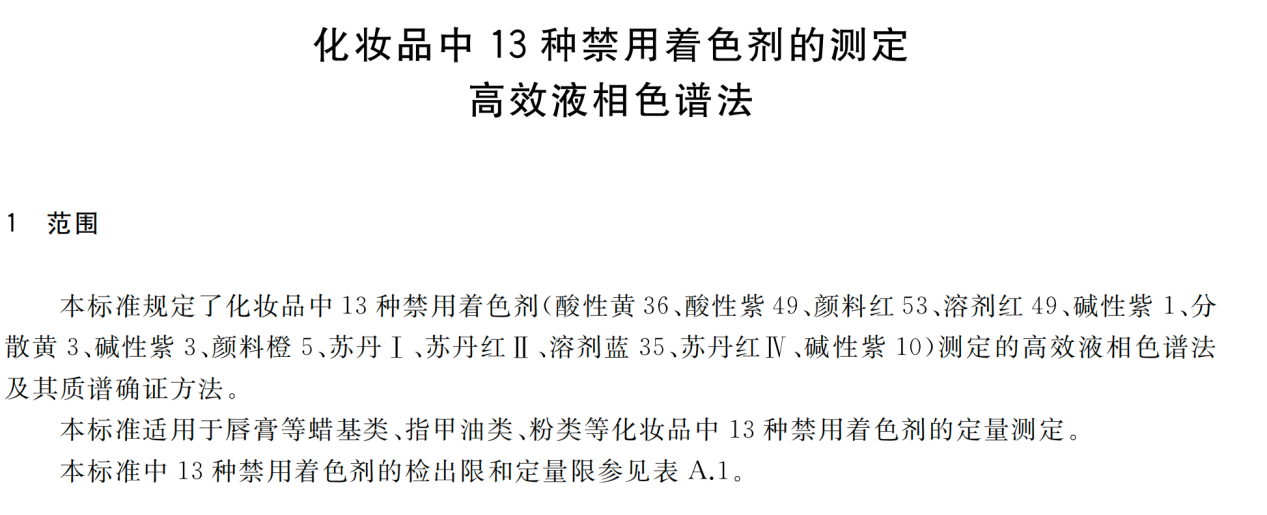 GB/T 34806-2017《化妆品中13种禁用着色剂的测定高效液相色谱法》