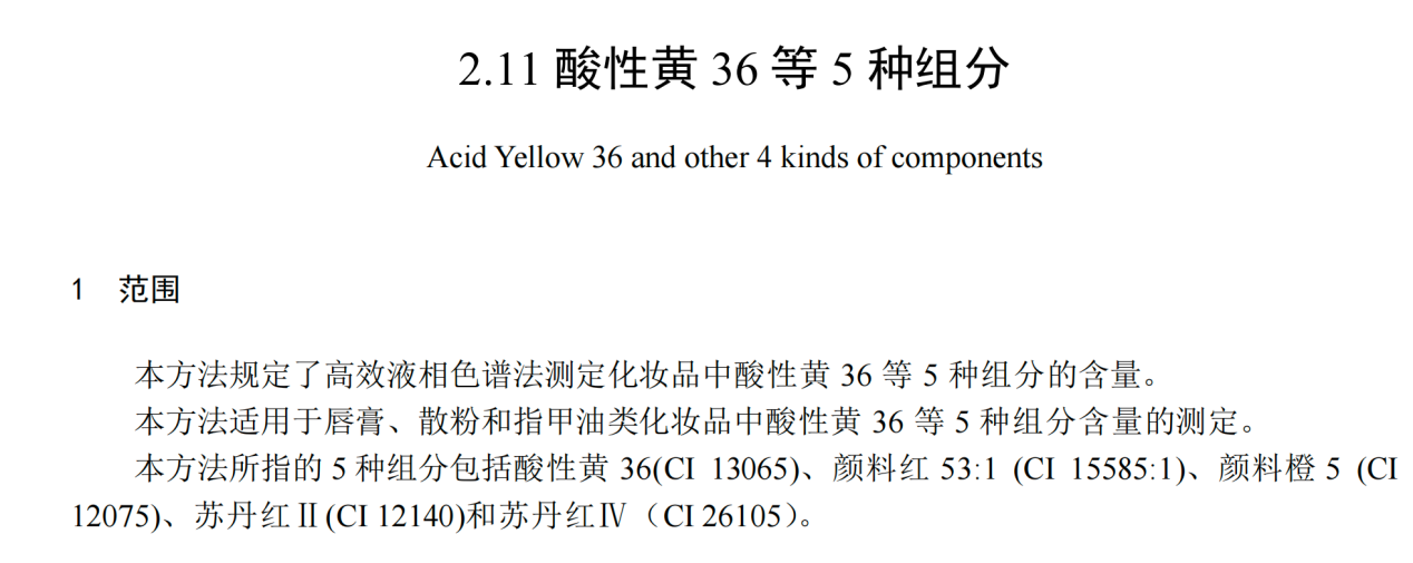 《化妆品中苏丹红I(CI 12055)等4种组分的测定》