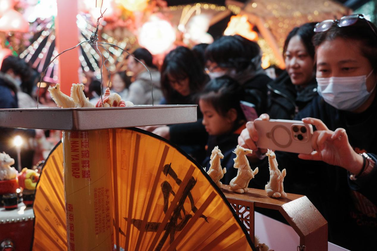 来自湛江的游客李先生特意拖家带口来到现场感受年味。“很多年没来佛山了,趁着周末带孩子来体验一番。”在他看来,这里不仅洋溢着浓厚的新春气息,更能让孩子快速了解佛山文化,“一场表演、一桌宴席、一件文创……短短几小时,就完成了一次生动的南粤文化体验。”