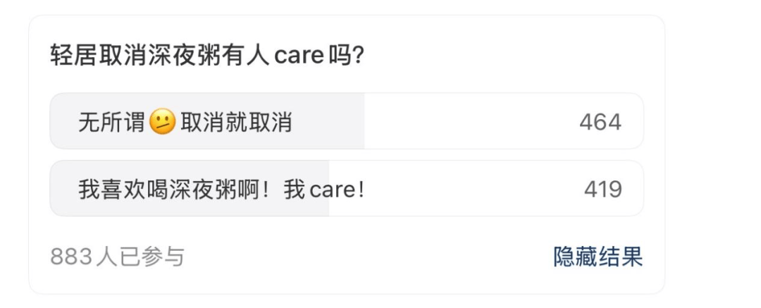 网友发起“轻居取消深夜粥有人care吗”的投票 图源:社交平台