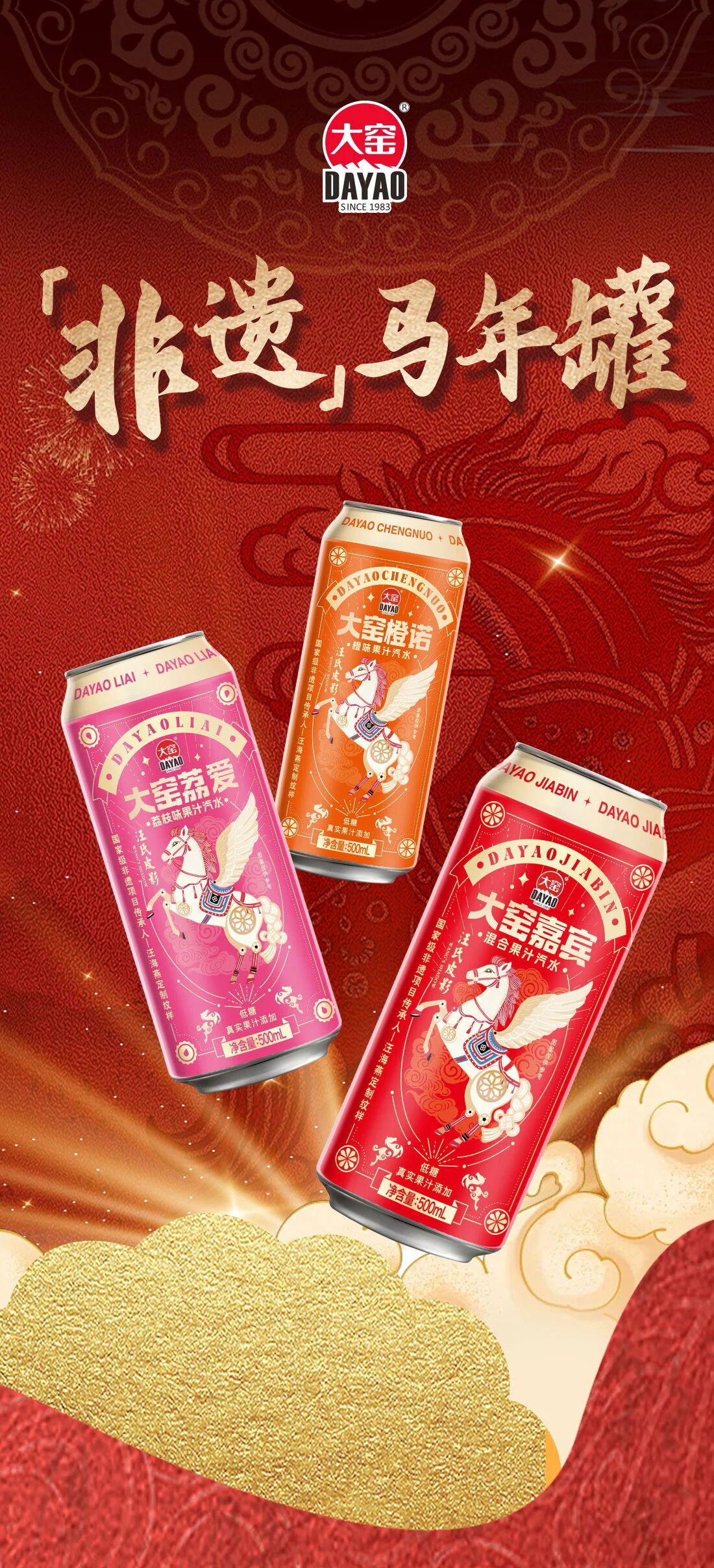 同样深谙此道的,还有大窑饮品推出的“非遗马年罐”。这款春节限定包装特邀国家级非遗项目传承人汪海燕亲自设计罐身,将“推皮走刀”的技法、“敦染贴金”的韵致,与马年的吉祥寓意融于瓶身每一处细节:马鞍、背景的铜钱纹分别寓意“马上有钱”“钱从四面八方来”;环绕的祥云纹托举骏马呼应“马踏祥云,平步青云”;马头拉丝纹鬃毛、中国结马尾、八瓣梅纹关节,尽显“龙马精神”“财源滚滚”。此外,产品包装甚至巧妙融入皮影操纵杆图案,暗合“握住大窑,便将马年平安喜乐、富贵吉祥的美好祝福尽数掌控”寓意。